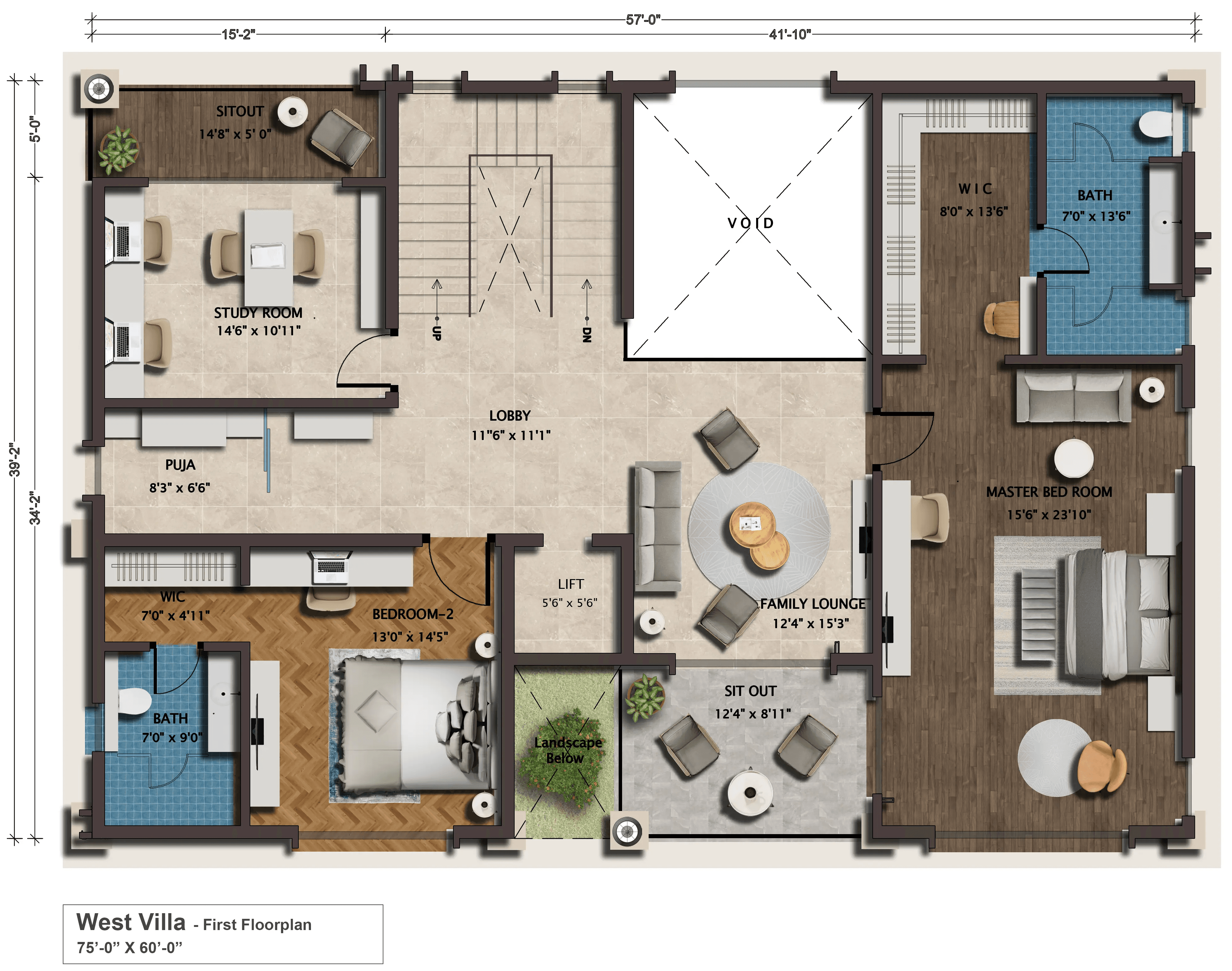 west facing villa